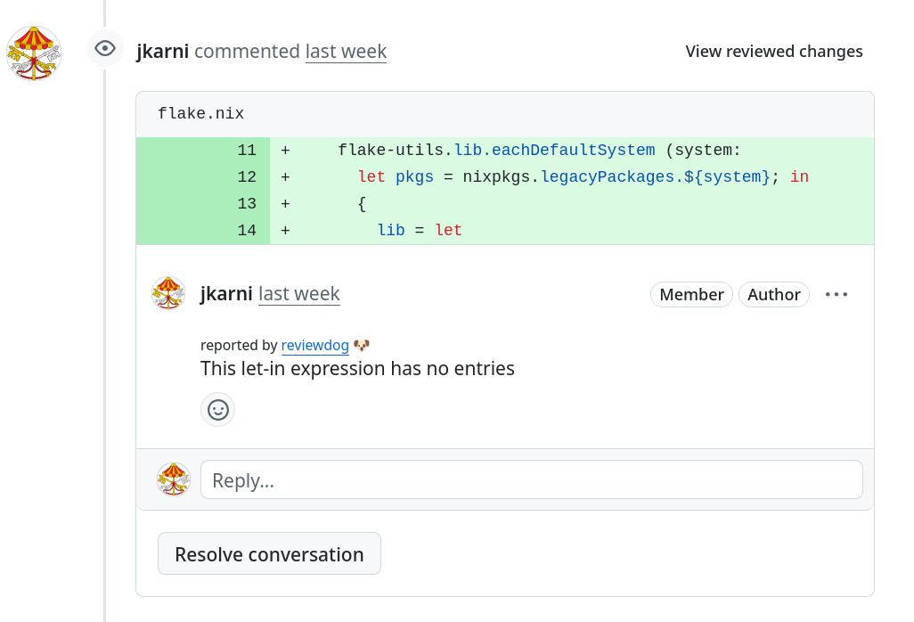 A comment automatically created by a garnix action (with reviewdog and statix).