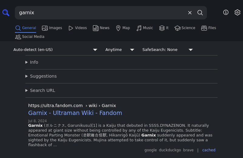 You'll need to modify the host name to reflect your garnix.me URL, and your SSH key (if you want to be able to login to the server, at least). If you commit that and push to your fork, in a couple of minutes garnix will have your Searx server deployed!